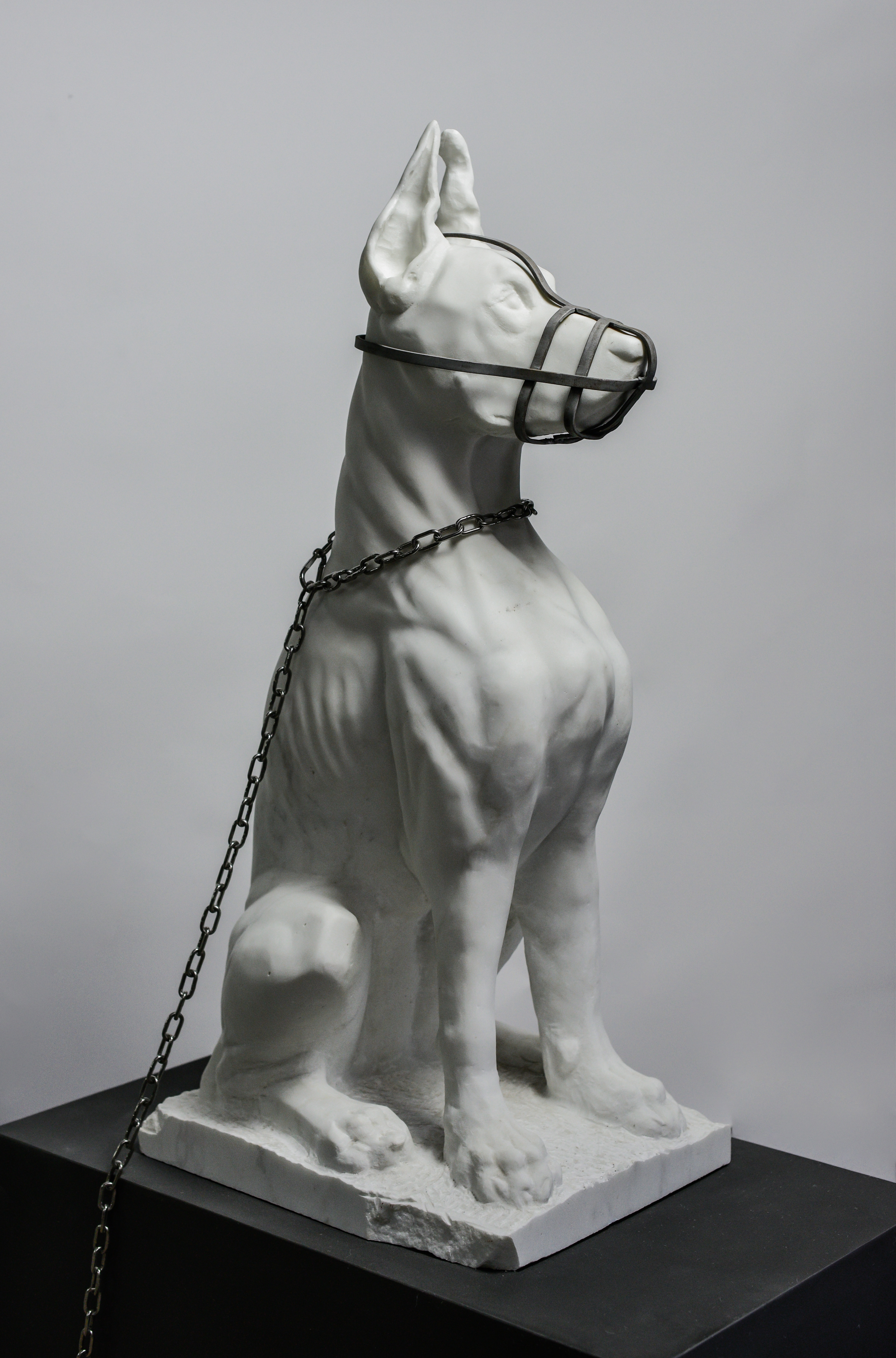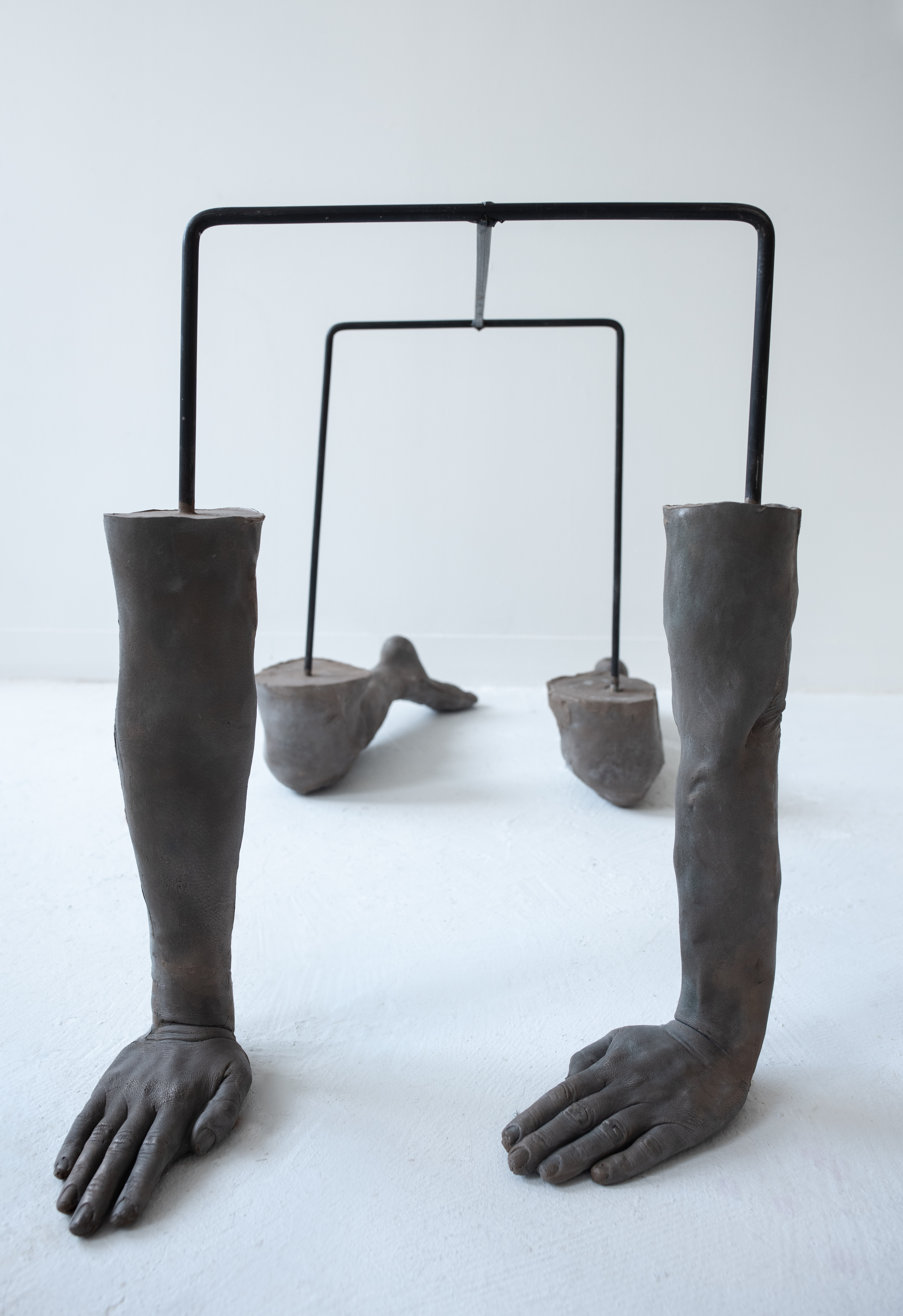 The Rig, 2019Bonded bronze, gesmonite, steel, fabric straps